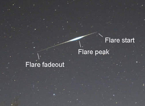 True, it does seem too uniform to be a satellite flare. But meteor trails aren't uniform either. Also I'm not sure what to make of the dotted appearance of the line.