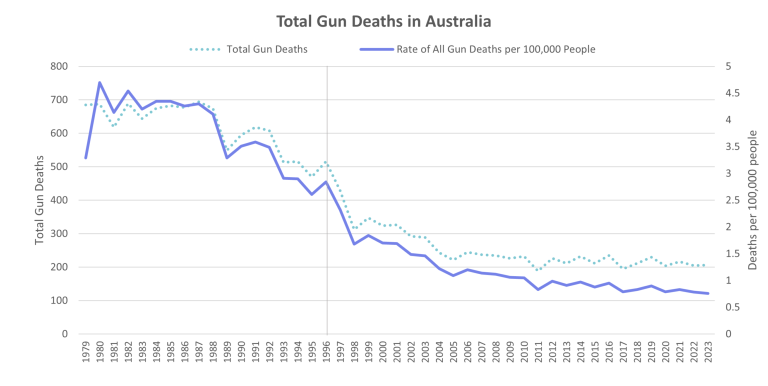 It reduced the gun violence? https://www.gunsafetyalliance.org.au/wp-content/uploads/2025/01/total-gun-deaths-aus-1-1536x772.png